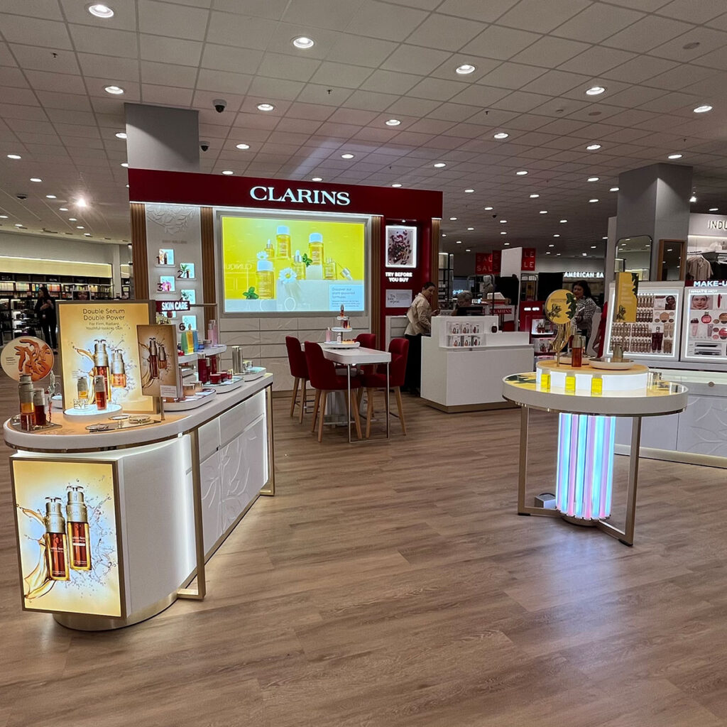 Our latest project for Clarins at Myer Chermside! Elevating the beauty experience with stunning design.